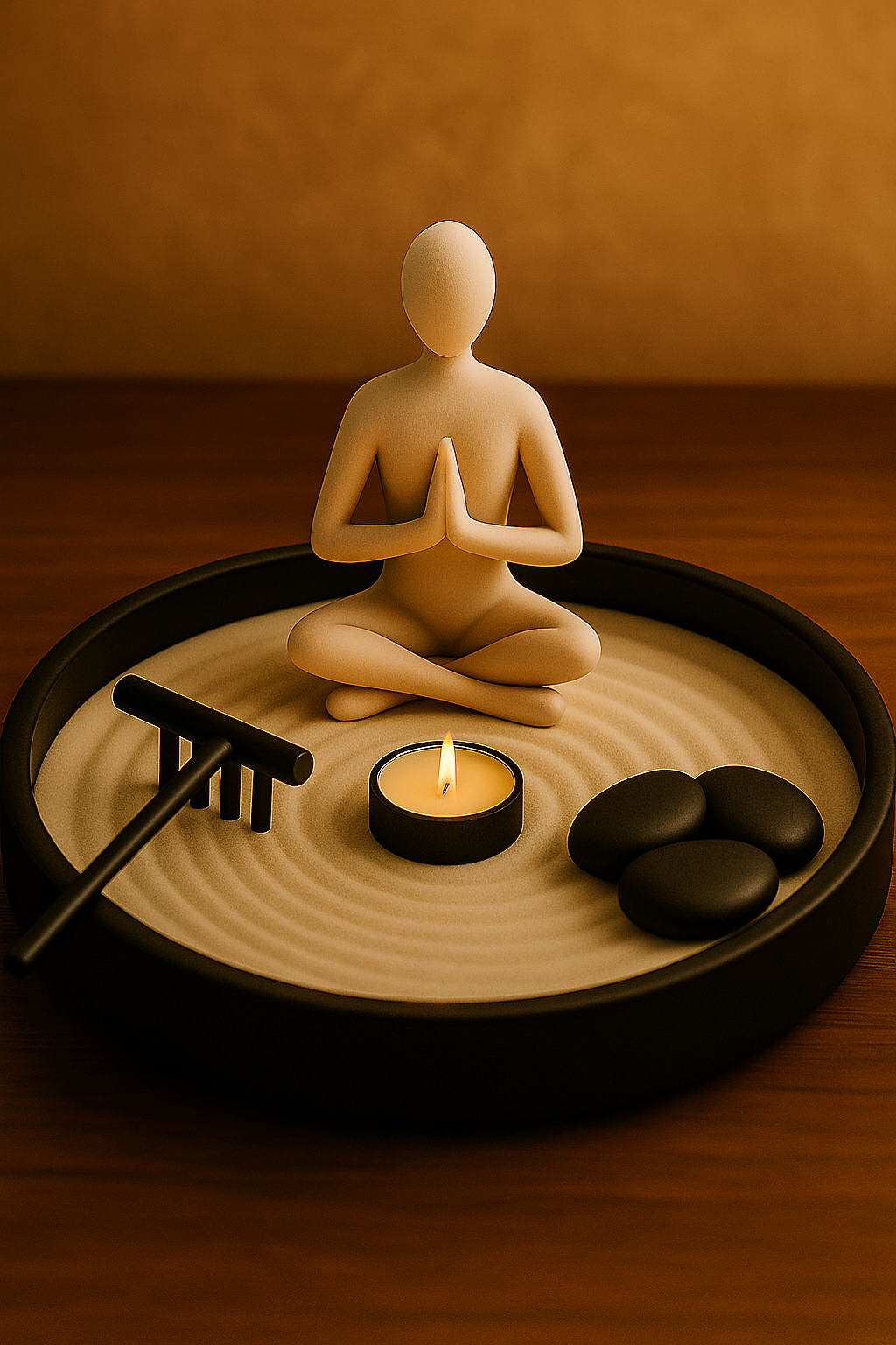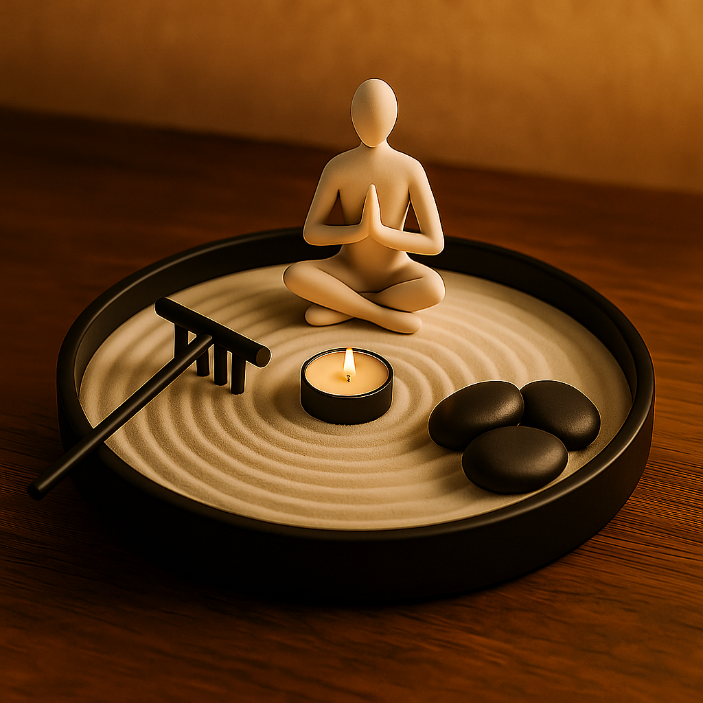 Ogni elemento – dalla figura meditativa alle onde perfette nella sabbia – è pensato per portare equilibrio visivo e mentale nei tuoi spazi.
