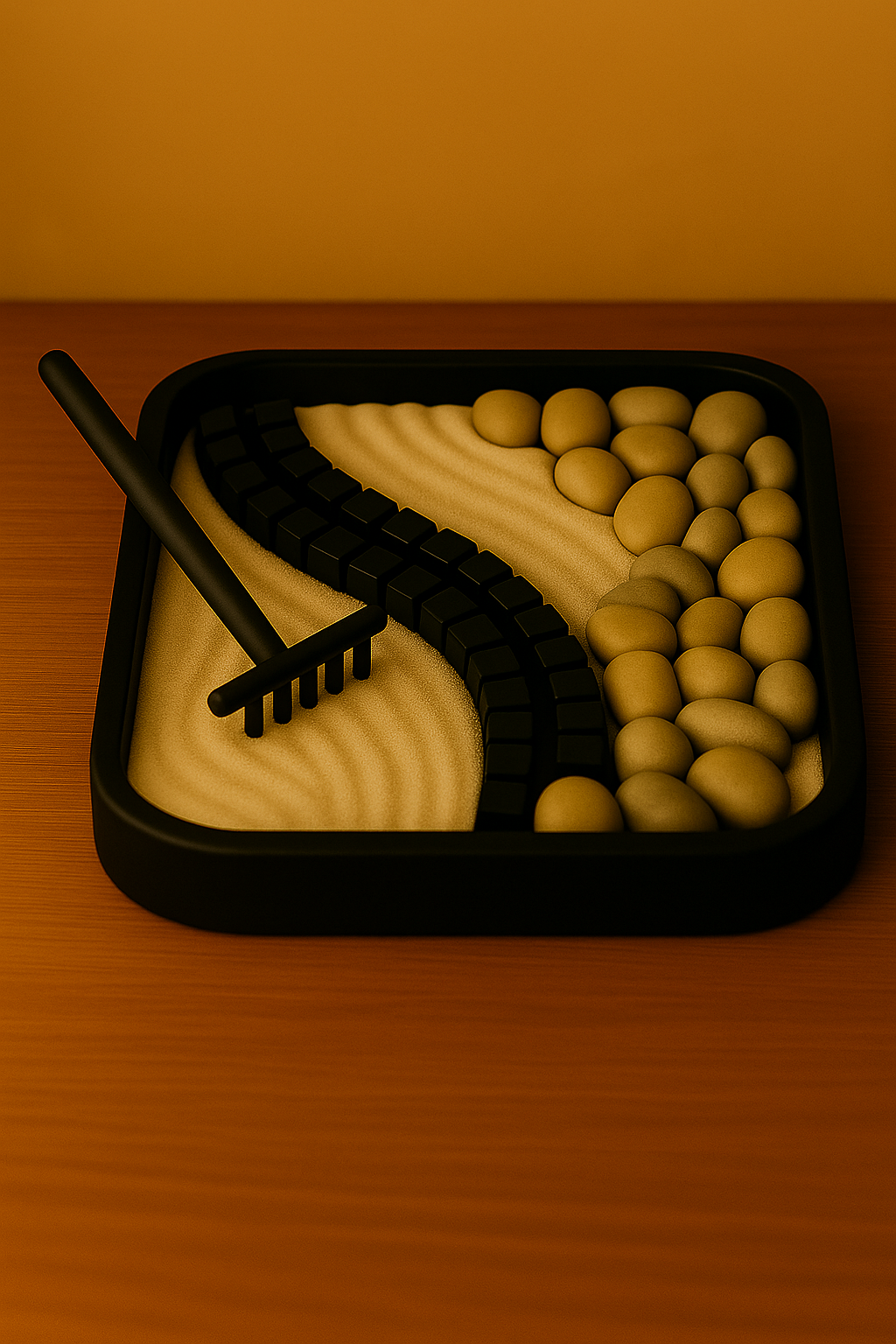 Riscopri la calma interiore con questo raffinato giardino zen da tavolo, interamente progettato e stampato in 3D.